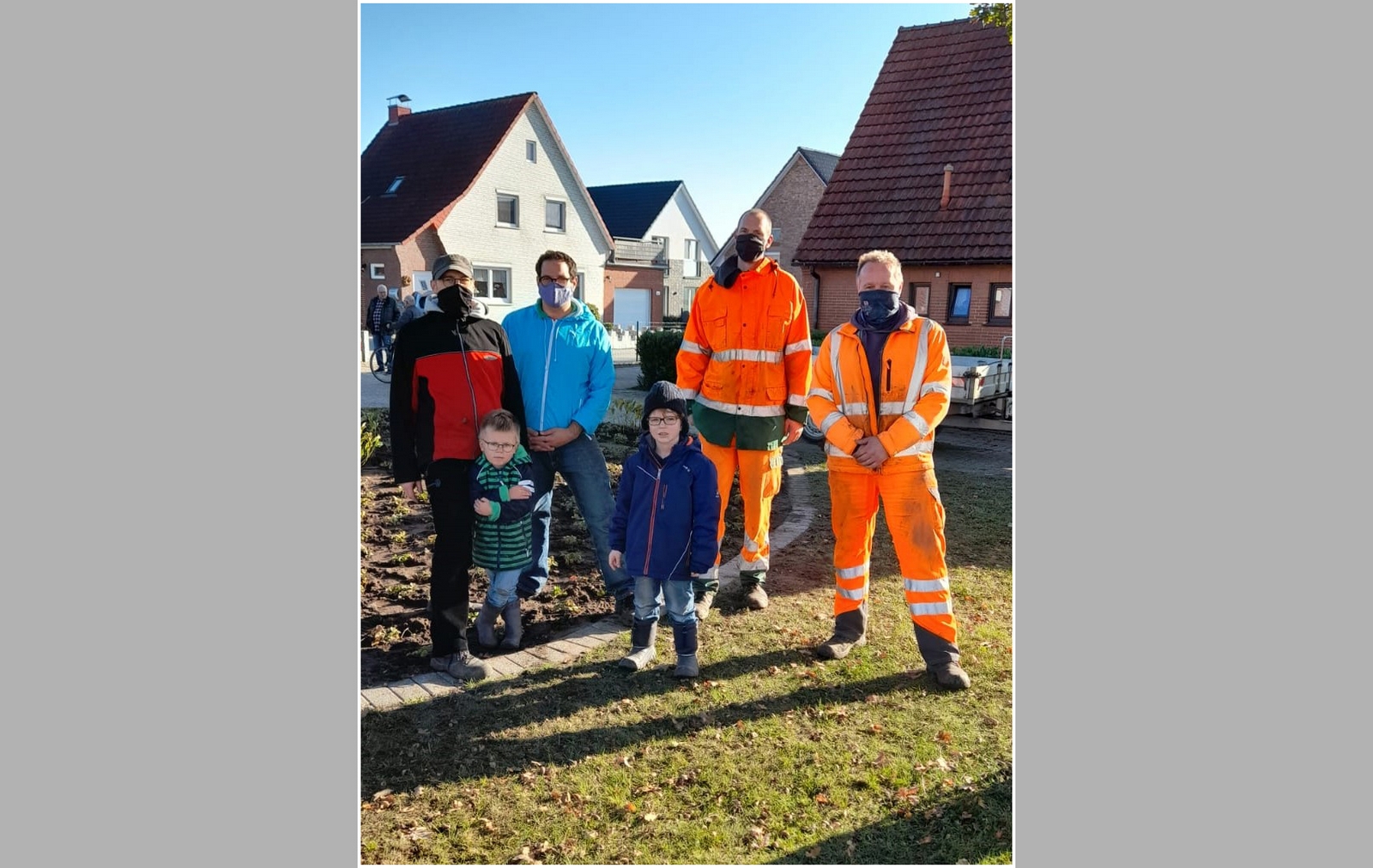 Ich habe mich zusammen mit einigen anderen fleißigen Bürger*innen und tatkräftiger Unterstützung durch Mitarbeiter des Betriebshofes an der jährlichen Pflanzaktion der Gemeinde Lemwerder beteiligt. GEMEINSAM wurden am Samstag 07.11.2020 in der Ernst-Pieper-Straße entlang der Schienen, in der Gerhard-Hauptmann-Straße, in der Steinfeldstraße und An der Weide insgesamt neun Bäume, 42 Sträucher, 95 Ziergräser und sage und schreibe 1.200 Bodendecker eingepflanzt. Dank der sehr guten Vorbereitung der Pflanzstellen durch den Betriebshof lief das Einpflanzen bei schönstem Herbstwetter wie am Schnürchen und machte Groß und Klein viel Spaß.